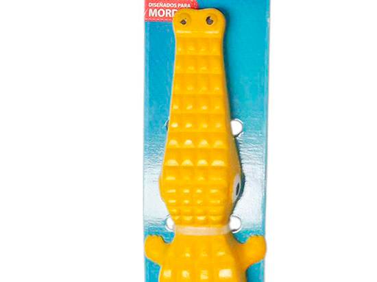 Juguete dental con forma de cocodrilo para perros medianos. Superficie texturizada que masajea encías y satisface el instinto de morder de forma segura y entretenida.