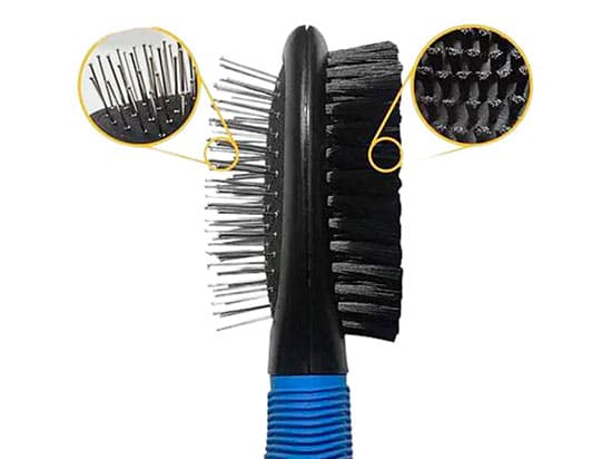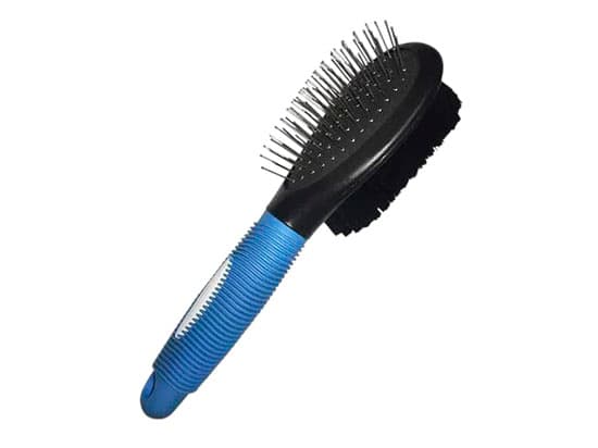 El Dog Club Combo Brush es un cepillo 2 en 1 profesional para perros, que combina pines metálicos con puntas redondeadas y cerdas suaves en un solo diseño. Su mango ergonómico antideslizante (azul/negro) ofrece un agarre seguro para sesiones de cepillado efectivas. Ideal para todo tipo de pelajes, desde cortos hasta doble capa.