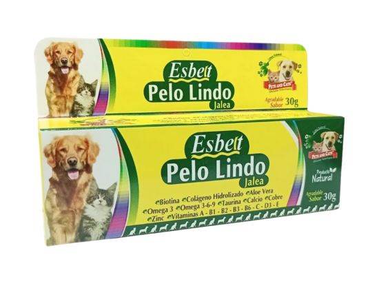Esbelt Pelo Lindo Jalea 30 gr es un suplemento nutritivo diseñado para mejorar la salud y el aspecto del pelaje de tu mascota. Su fórmula en jalea facilita la absorción de sus ingredientes activos, dejando el pelo suave, brillante y bien cuidado.