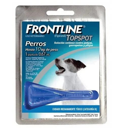 FRONTLINE Topspot para perros hasta 10 kg (0.67 ml) es una pipeta antiparasitaria de acción rápida contra pulgas y garrapatas. Formulada especialmente para perros pequeños y medianos como Poodles, Beagles y Schnauzer Miniatura.