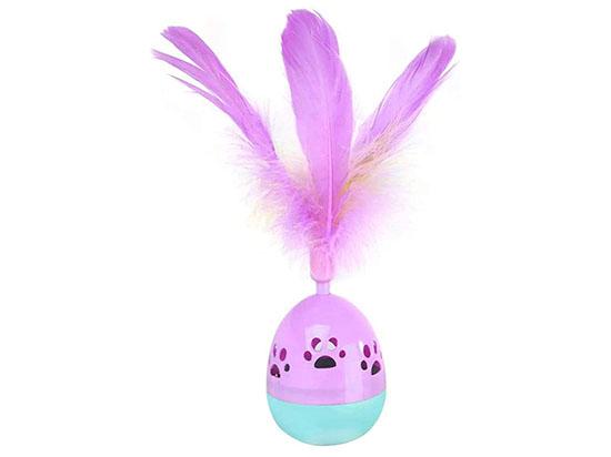 Juguete interactivo con plumas móviles y dispensador de premios integrado, diseñado para estimular el instinto de caza y la inteligencia de tu gato. Su base tipo Rolly Polly siempre regresa a su posición inicial, manteniendo el movimiento y la diversión mientras recompensa a tu mascota con golosinas. Ideal para combinar ejercicio físico y mental.