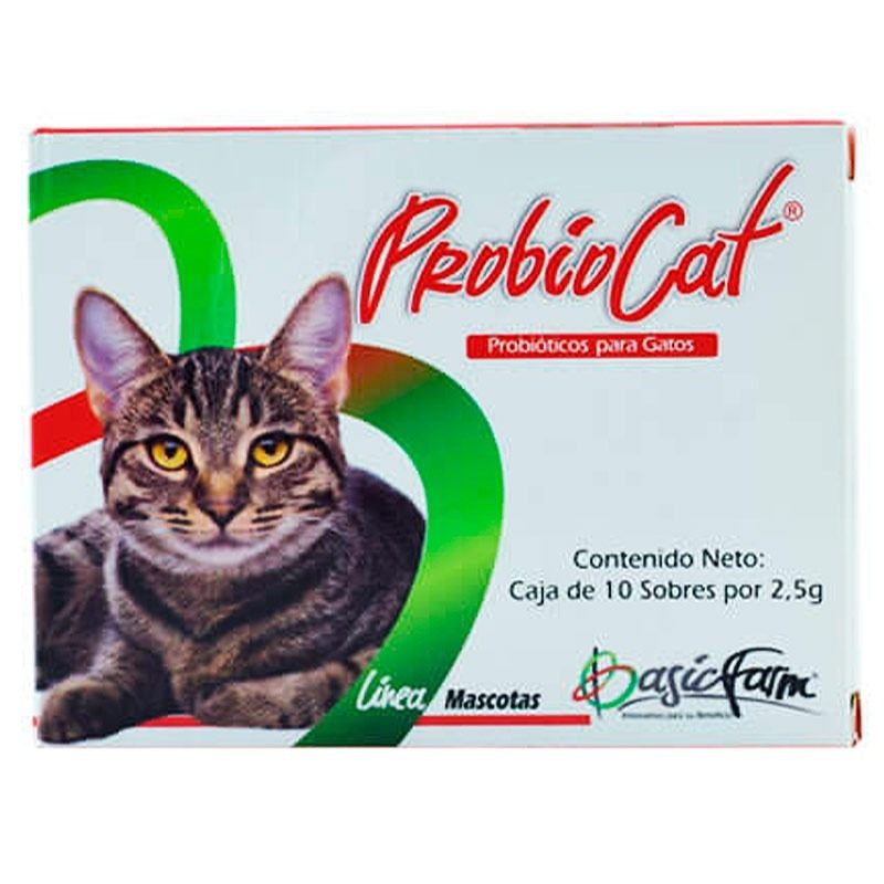 Suplemento para gatos por 2.5g con 2 cepas probióticas específicas + prebióticos que mejoran la salud intestinal y digestión.